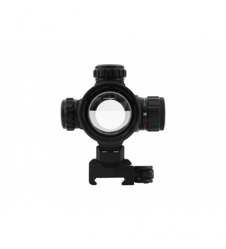 Przedstawiamy Państwu kolimator Leapers DS3840 4.0'' 30 mm T-DOT. Kolimator o budowie zamkniętej charakteryzuje wysoką jakością wykonania. Tubus kolimatora został wykonany z duraluminium dzięki czemu zyskujemy pewny i skuteczny układ optyczny do Twojej jednostki broni czy też karabinku pneumatycznego. Kolimator posiada plamkę 4 MOA typu T-DOT a jej natężenie oraz kolor (czerwony i zielony) możemy zmienić płynnie za pomocą wieżyczki umiejscowionej na boku urządzenia. Firma Leapers zastosowała w produkcie wysokiej klasy soczewki, które są odporne na parowanie, dzięki czemu obraz jest jasny oraz klarowny w najbardziej wymagających warunkach. Optykę kolimatora zabezpieczają dwie gumowe zaślepki typu flip-open. Kolimator w swoim zestawie posiada montaż na 22 mm oraz podwyższenie, dzięki czemu jesteśmy w stanie zamontować go praktycznie na każdej jednostce broni posiadającej szynę picatinni.