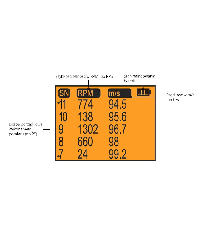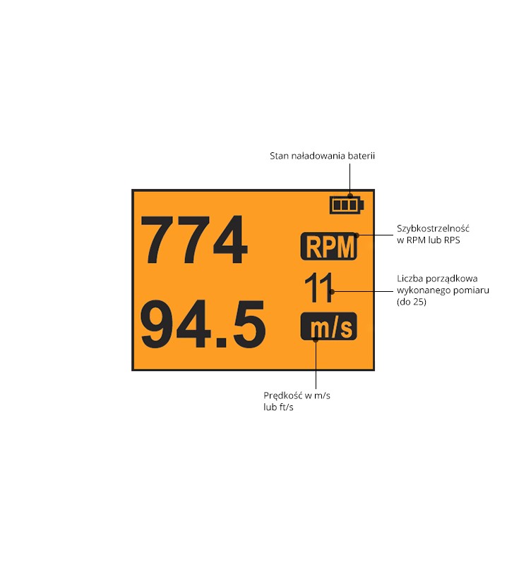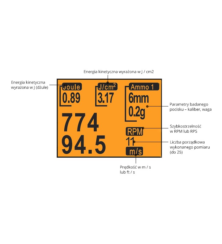 Po poprawnej konfiguracji AC6000 MKIII BT możemy przystąpić do pomiaru. Zbliżenie lufy do otworu pomiarowego i oddanie strzału spowoduje wygenerowanie wyniku na podstawie wprowadzonych danych.