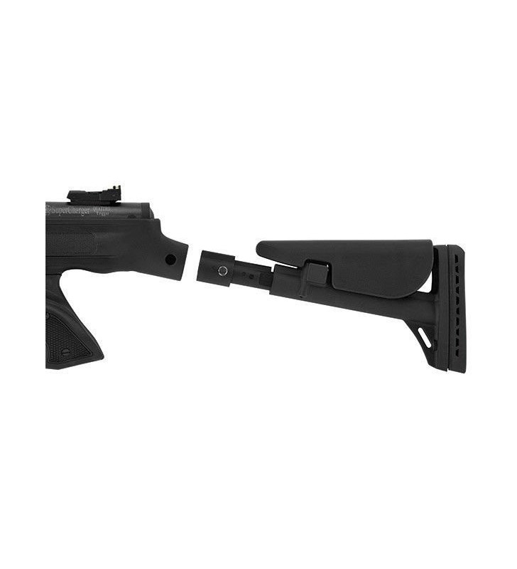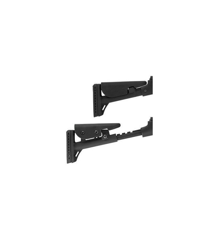 Kolba - polimerowo-aluminiowa teleskopowa taktyczna kolba TTS umożliwia skokową regulację długości w zakresie 4" (10 cm) pozwalając dopasować jej długość do budowy ciała strzelca. Kolbę przystosowano dla osób prawo oraz leworęcznych. Konstrukcja umożliwia regulację wysokości baki za pomocą śrub. Gumowa stopka absorbuje energię strzału. Dodatkowo istnieje możliwość zdjęcia kolby.