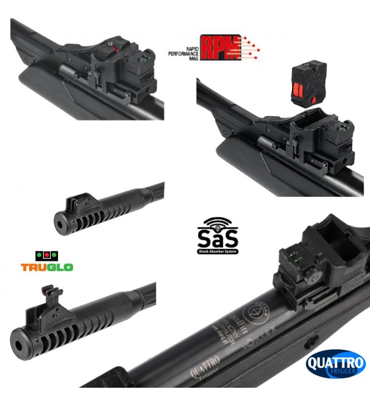 Zastosowana w tym modelu sprężyna gazowa Vortex® poprawia celność wiatrówki, gwarantuje cichą pracę, mniejszy odrzut, powtarzalność każdego strzału oraz brak zużycia sprężyny gazowej (podczas całego okresu eksploatacji).