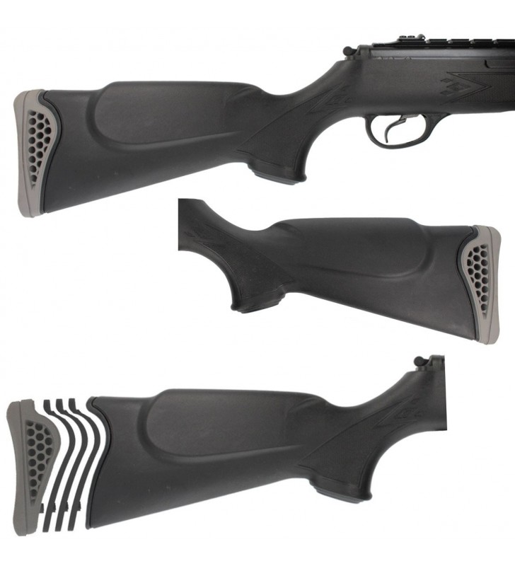 Osada - ergonomiczna wykonana z wytrzymałego polimeru w kolorze czarnym. Ryflowanie na chwycie pistoletowym oraz w środkowej części łoża zapewnia pewność chwytu oraz spełnia funkcje ozdobne. Na kolbie znajduję się wyprofilowana poduszka policzkowa typu montecarlo ułatwiająca złożenie się do strzału jak i celowanie. Kolbę przystosowano dla osób prawo jak i leworęcznych . Wentylowana gumowa stopka TrioPad® (trzy rodzaje wymiennych stopek) na końcu kolby umożliwia regulację jej długości oraz absorbuję energię odrzutu po oddanym strzale.