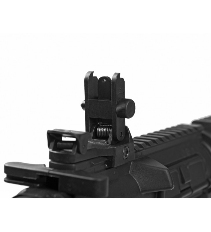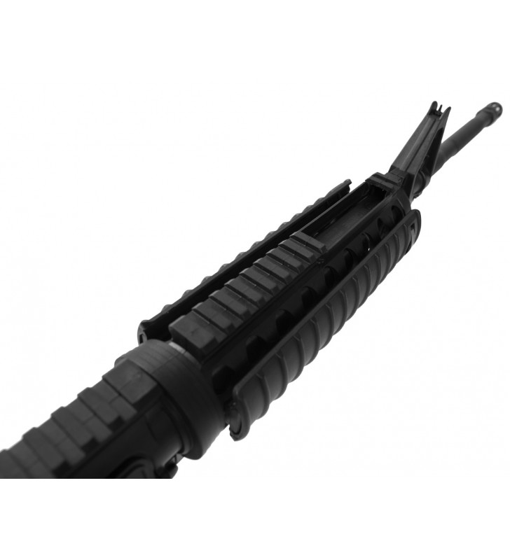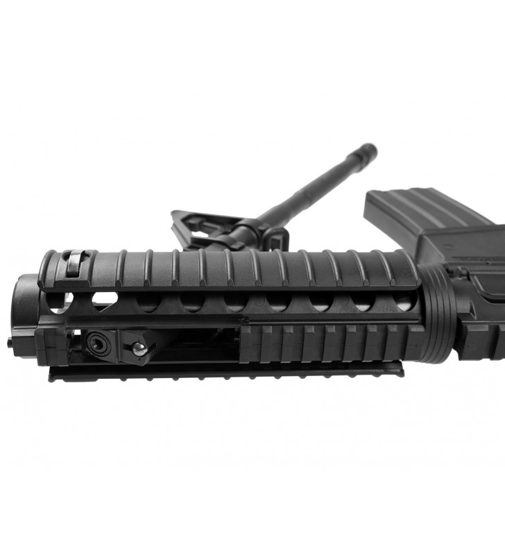 Na kolbie oraz lufie znajdują się dwa zaczepy umożliwiające montaż pasa taktycznego. Do wiatrówki dołączono atrapę magazynka M4, który można wpinać i wypinać z karabinka.