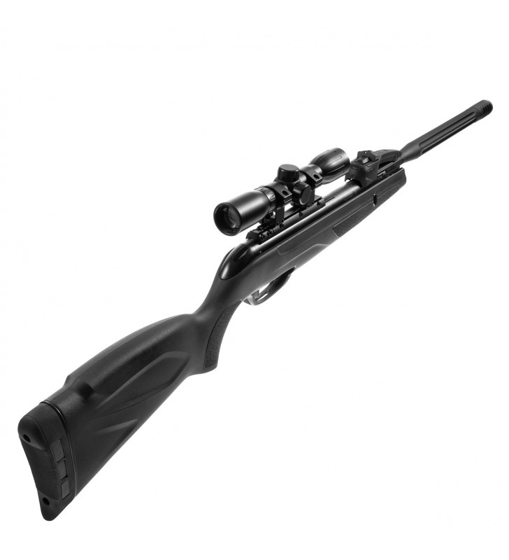W komplecie do wiatrówki dołączona jest luneta 4x32 wraz z montażem oraz magazynek o pojemności 10 śrucin.