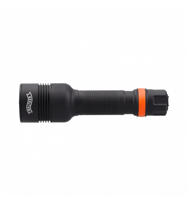 Zmiany barwy światła dokonujemy poprzez obrót głowicy latarki. Do aktywacji latarki i zmiany jasności służą 2 osobne przycisku z tyłu latarki. Walther HFC1może być zasilana za pomocą pojemnego akumulatora 21700 (brak w zestawie), który dzięki adapterowi, można także zastąpić ogniwem 18650 (brak w zestawie) lub dwiema bateriami CR123 (w zestawie). Sterownik Walther HFC1 ma funkcję pamięci, dlatego latarka po włączeniu jest automatycznie uruchamiana w ostatnio używanym trybie. Kolejnym przydatnym rozwiązaniem jest tryb blokady, który chroni przed przypadkowym włączeniem latarki podczas przenoszenia.