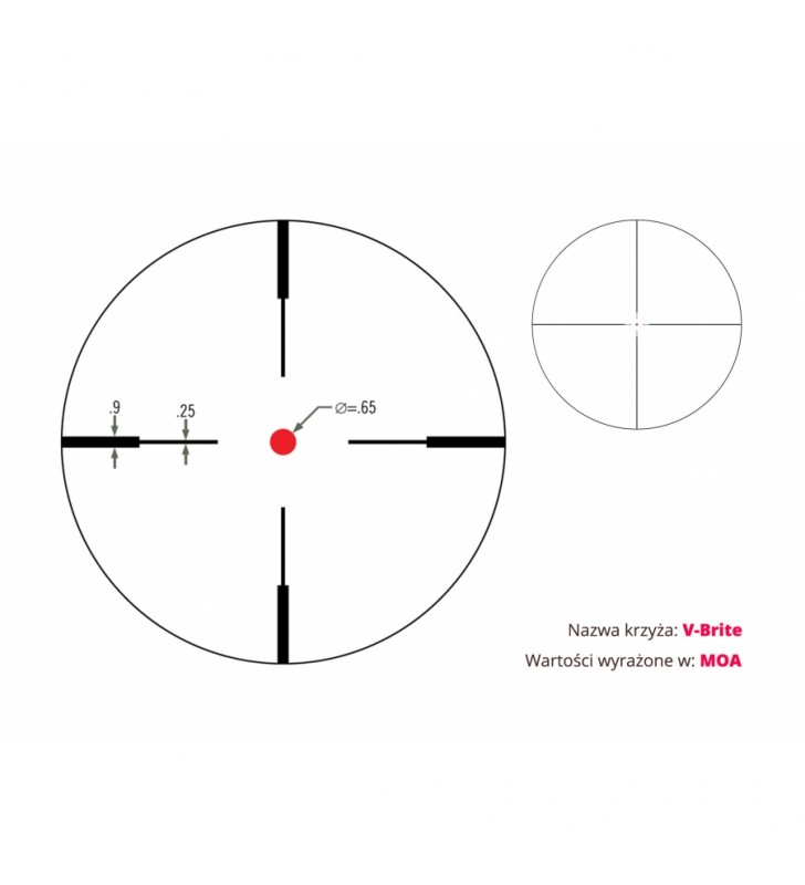To, co wyróżnia lunetę celowniczą Vortex Crossfire II 3-9x40 1″ V-Brite na tle konkurencji, to przede wszystkim jasność optyki i solidna konstrukcja. Niezaprzeczalną zaletą lunety jest podświetlany krzyż V-BRITE, który wychodzi naprzeciw potrzebom dodatkowego oświetlenia siatki celowniczej.Model ten ma bardzo atrakcyjną cenę, zwłaszcza jeśli wziąć pod uwagę jego wszystkie atuty – wielowarstwowe powłoki soczewek, błyskawiczne ostrzenie czy zachowanie przejrzystego i wyraźnego obrazu. Zastosowano tutaj także ulepszone zerowanie wieżyczek MOA, które odpowiada za optymalną wydajność lunety.