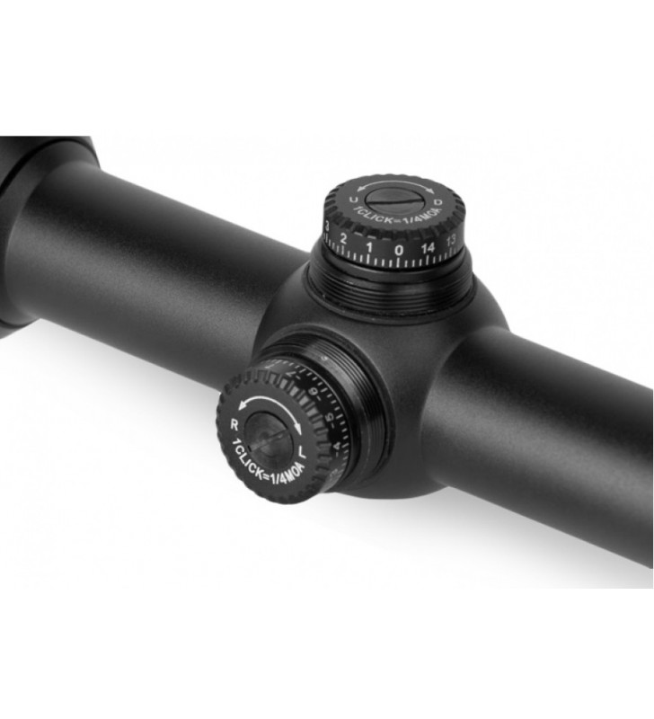 Luneta celownicza Leapers UTG 3-12X44 AO Compact przeznaczona do strzelectwa sportowego, wyposażona w zmienne powiększenie (zoom 3x-12x) oraz wbudowany sunshader. Posiada regulację krzyża w pionie i w poziomie oraz dodatkowo regulację paralaksy. Przesunięcie przy jednym przeskoku pokrętła regulacji krzyża 1/4”/100 yardów. Luneta została wyposażona w podświetlany krzyż MilDot o 7-stopniowej skali regulacji natężenia światła z wyborem 36 wariantów kolorystycznych.