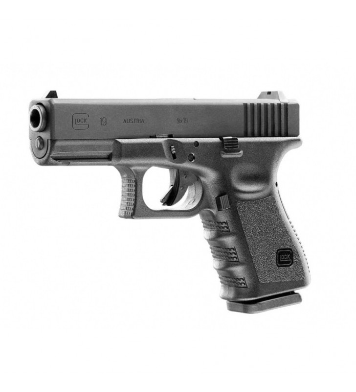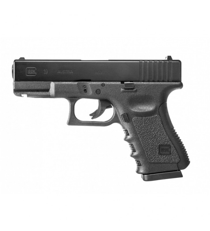 Glock 19 4,5 mm BB CO2 to pistolet pneumatyczny na CO2, wyposażony w metalowy zamek, wysuwany z rękojeści magazynek oraz szereg rozwiązań konstrukcyjnych zapożyczonych z broni palnej.