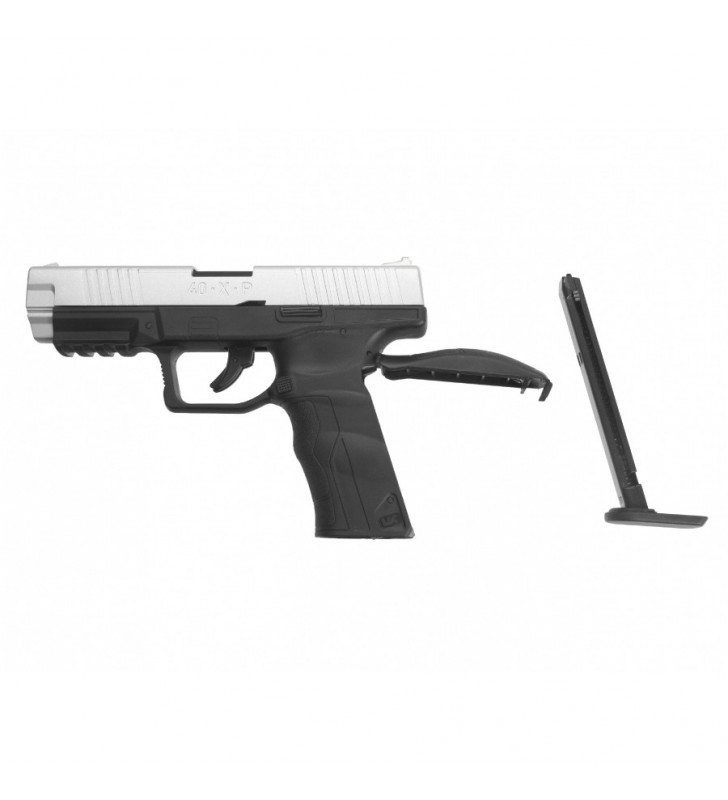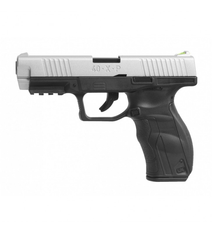 Umarex 40.X.P to nowoczesny pistolet wiatrówkowy z mocnym systemem blow-back, wyposażony w metalowy zamek, szynę akcesoryjną, pojemny magazynek oraz światłowodowe przyrządy celownicze.