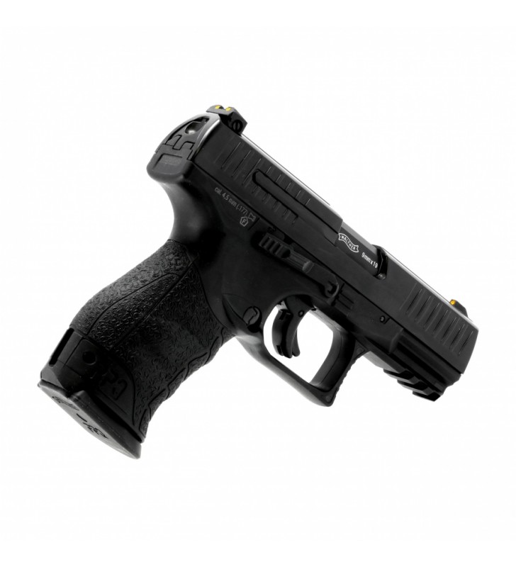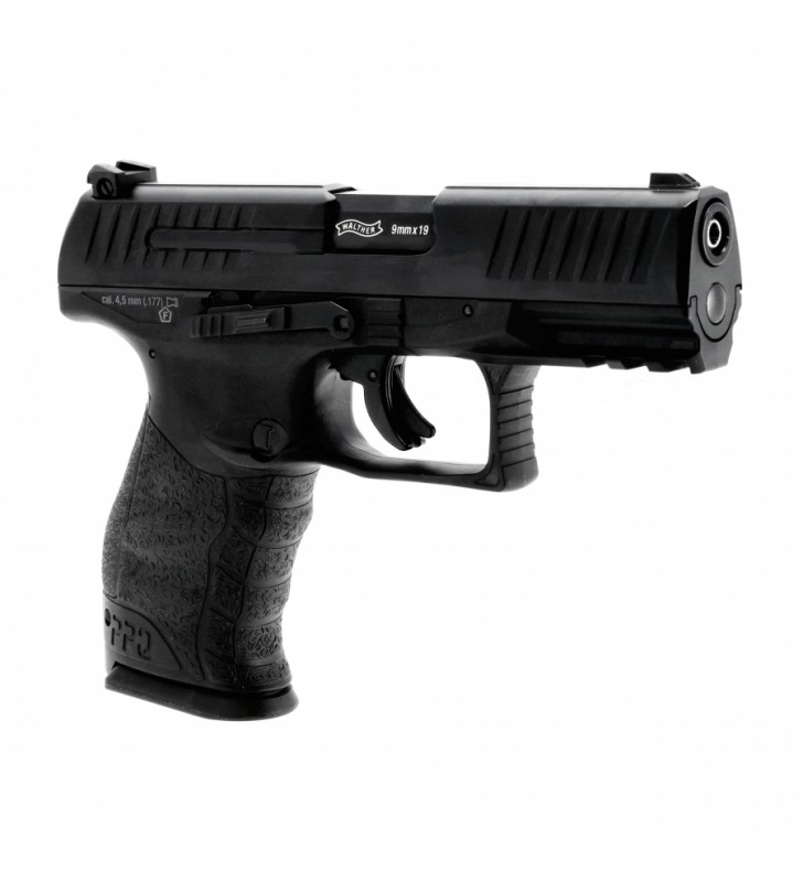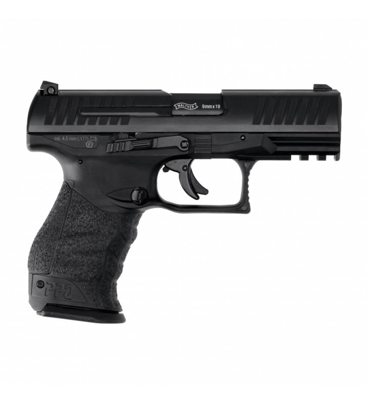 Walther Walther PPQ M2 4,5 mm to pneumatyczna replika wzorowana na pistolecie samopowtarzalnym Walther PPQ M2, który opracowano dla niemieckiej Policji jako potencjalnego następcę wysłużonego Walthera P99. Podobnie jak w oryginale pistolet ma powiększony kabłąk, polimerowy szkielet z szyną akcesoryjną, profilowaną rękojeść o antypoślizgowym teksturowaniu oraz regulowaną szczerbinkę (w poziomie). Rękojeść pistoletu ma profilowane wycięcia na palce oraz drobne antypoślizgowe teksturowanie identyczne z fakturą okładzin broni palnej. Powyższe rozwiązania powodują, że wiatrówka bardzo dobrze i komfortowo leży niemalże w każdej dłoni.