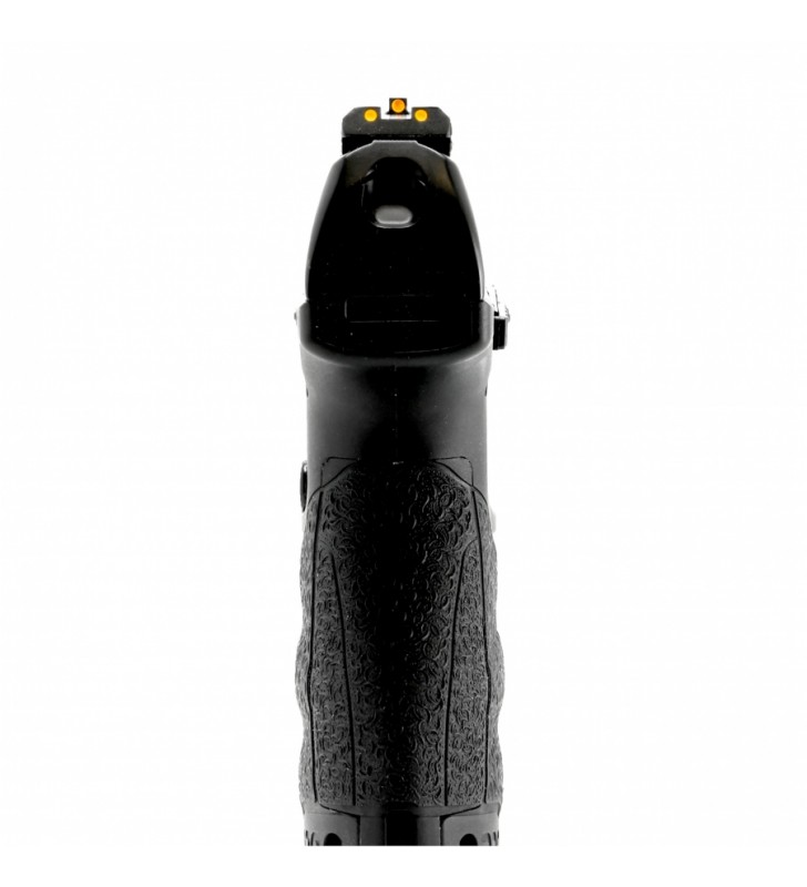 Walther PPQ M2 ma mechaniczne przyrządy celownicze z żółtymi oznaczeniami. Kontrastowe kropki pozwalają na znacznie szybsze zgrywanie przyrządów, łatwiejsze „wejście w cel” oraz strzelanie w słabszych warunkach oświetleniowych. Wszystkich pasjonatów broni i militariów z pewnością ucieszy fakt, że na wiatrówce naniesiono licencjonowane oznaczenia producenta Walther.