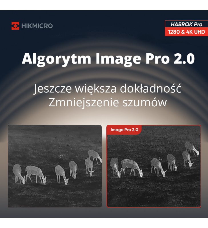 Ulepszony algorytm Image Pro 2.0 w HIKMICRO Habrok Pro HQ50LN charakteryzuje się zoptymalizowanymi detalami, bardziej warstwowym tłem i mniejszym szumem, oferując bardziej dokładne i precyzyjne odwzorowanie dla myśliwych podejmujących decyzje.