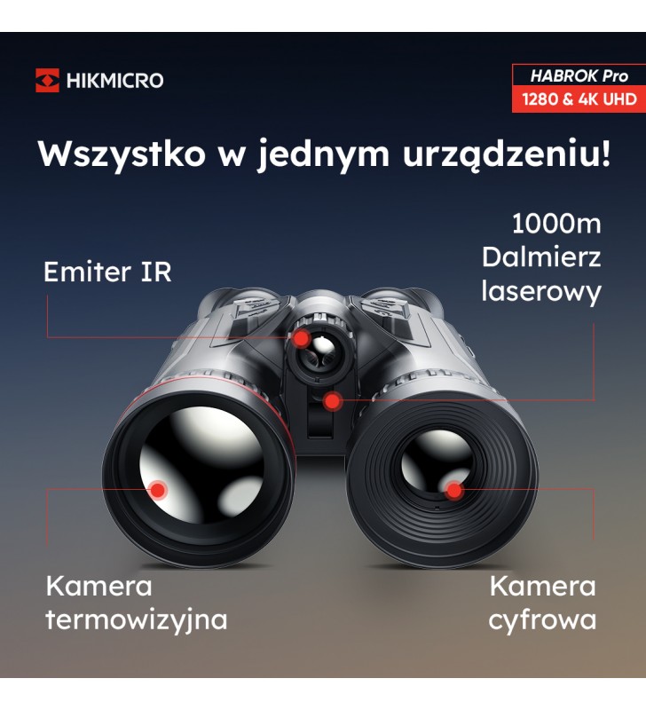 Lornetka termowizyjna HIKMICRO Habrok Pro HQ50LN 940 nm to zaawansowane urządzenie, które łączy w sobie najwyższej jakości komponenty oraz nowoczesne algorytmy przetwarzania obrazu. Dzięki technologii obrazowania w średniej podczerwieni i zastosowaniu sensora operującego w zakresie światła widzialnego, zapewnia niespotykaną dla standardowych termowizorów szczegółowość obrazu. Urządzenie doskonale sprawdza się w precyzyjnej identyfikacji istot żywych i obiektów emitujących ciepło, co czyni je niezastąpionym narzędziem dla każdego myśliwego, niezależnie od warunków terenowych.