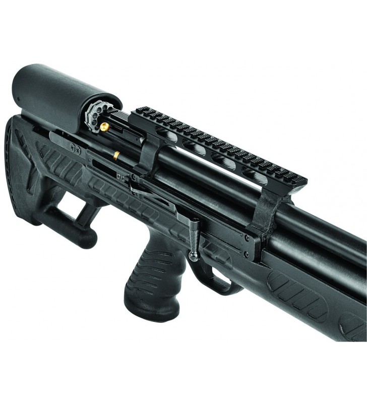 Magazynki - wymienne, obrotowe. W zależności od kalibru oferowane są aluminiowe 10-strzałowe (kal. 4.5 mm i 5.5 mm) lub stalowe 9-strzałowe (kal. 6.35 mm). Przeładowanie odbywa się przy pomocy dwutaktowej dźwigni side lever action znajdującej się po prawej stronie karabinu. Powoduje naciągnięcie „kurka”, obrócenie magazynka i wprowadzenie nowego śrutu do komory lufy. W zestawie dwa magazynki.