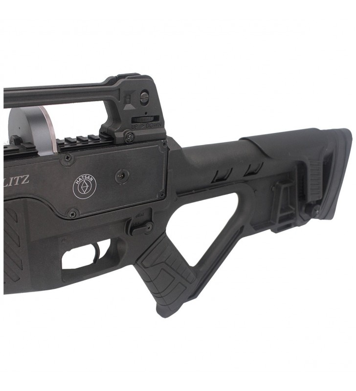 BLITZ, wielostrzałowa wiatrówka PCP firmy Hatsan Arms wyposażona w przełącznik rodzaju ognia (selektor ognia) Full / Semi. W pełni automatyczny FullAuto (ogień ciągły) oraz półautomatyczny SemiAutoAction (powtarzalnie). BLITZ zapewnia automatyczne przeładowanie po każdorazowym naciśnięciu języka spustowego (tylko wersja FAC*) oraz szybkie oddawanie celnych strzałów na znaczne odległości bez potrzeby zmiany / korekty linii celowania. Dostępny w kalibrach: .22 (5.5 mm), .25 (6.35 mm) oraz .30 (7.62 mm).