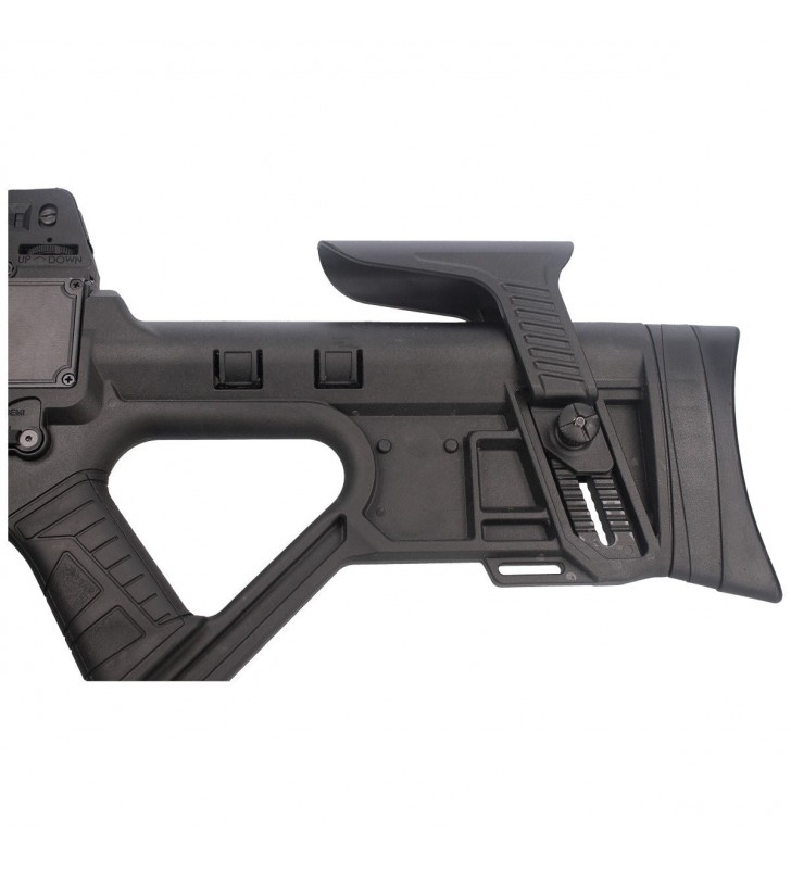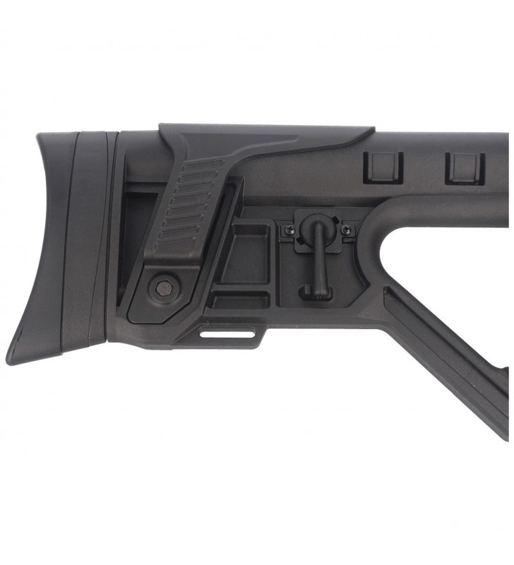 Osada - taktyczna z otworem na kciuk TH (Thumb Hole). Wstawki z miękkiej gumy na chwycie pistoletowym oraz ryflowana środkowa część łoża dla lepszej kontroli i wyczucia. Kolba przystosowana dla osób prawo i leworęcznych zakończona gumową stopką absorbuje energię odrzutu po oddanym strzale. Regulacja stopki w pionie (góra / dół) oraz na wysokość baki. Dzięki możliwości regulacji proces skonfigurowania wiatrówki zgodnie z własnymi preferencjami jak i stylem strzelania jest szybki i nieskomplikowany.