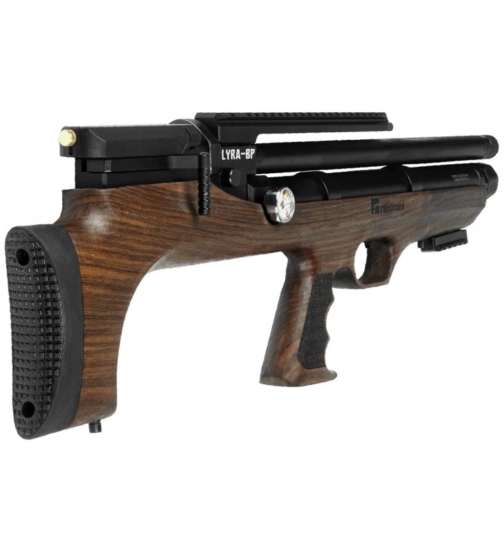 Lyra BP to najnowszy wariant bestsellerowej serii wiatrówek marki Reximex. Nowoczesna, wielostrzałowa wiatrówka PCP typu bull pup wyposażona w dźwignię napinania Side Lever, regulowany język spustowy, osadę z wyselekcjonowanego drewna orzechowego. Dzięki zastosowaniu układu bezkolbowego karabinek znacząco zyskał na ergonomii, bez utraty parametrów strzeleckich.