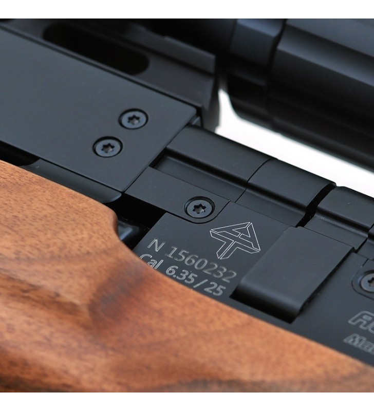 Ten karabin posiada wbudowany regulator ciśnienia co pozwala na oddawanie bardzo celnych i precyzyjnych strzałów. . W standardzie  szyna  22mm (Weaver), dzięki czemu można zamontować różne akcesoria typu laser, kolimator etc.