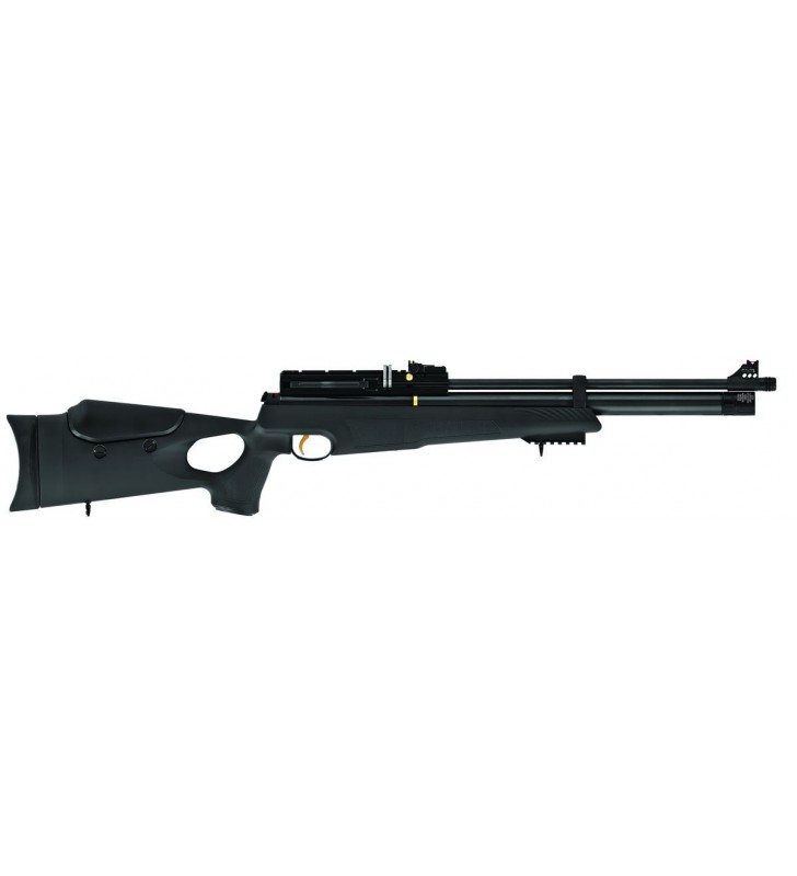 Karabinek Hatsan AT44-10 mocna, wielostrzałowa wiatrówka 10 lub 9-strzałowa (w zależności od kalibru) typu PCP (Pre-Charged Pneumatic) o dużym zasięgu, wysokiej jakości wykonania. Polimerowa kolba TH (ThumbHole) z otworem na kciuk i regulacją wysokości baki. Model polecamy miłośnikom dobrej zabawy oraz tuningu.