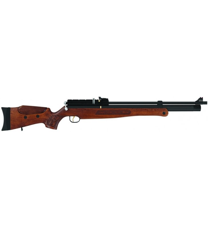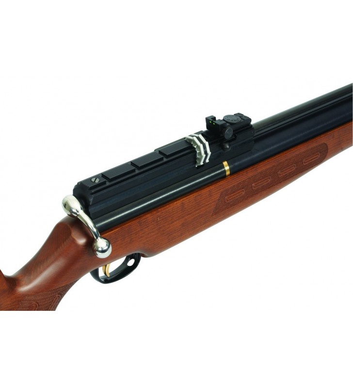 Karabin PCP Hatsan BT65 RB W LW  (Rear Bolt) z dźwignią przeładowania z tyłu komory zamkowej. Mocna, nowoczesna wielostrzałowa wiatrówka (10 lub 9-strzałowa w zależności od kalibru) z precyzyjną lufą niemieckiej firmy Lothar & Walther. Kolba wykonana z drewna.