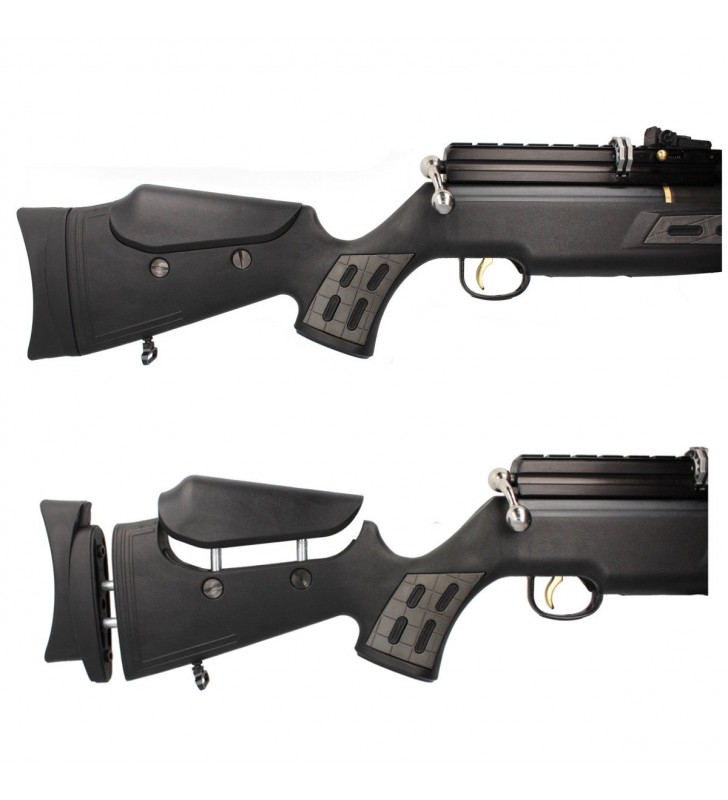 Osada - wykonana z wytrzymałego odpornego na uszkodzenia mechaniczne polimeru. Wstawki z miękkiej gumy na środkowej części łoża zapewniają pewny chwyt również mokrymi dłońmi. Profilowana poduszka policzkowa na kolbie typu Monte Carlo ułatwia złożenie się do strzału jak i celowanie. Kolba przystosowana dla osób prawo i leworęcznych. Gumowa stopka absorbująca energię po oddanym strzale. Konstrukcja kolby umożliwia regulację wysokości baki za pomocą śrub.