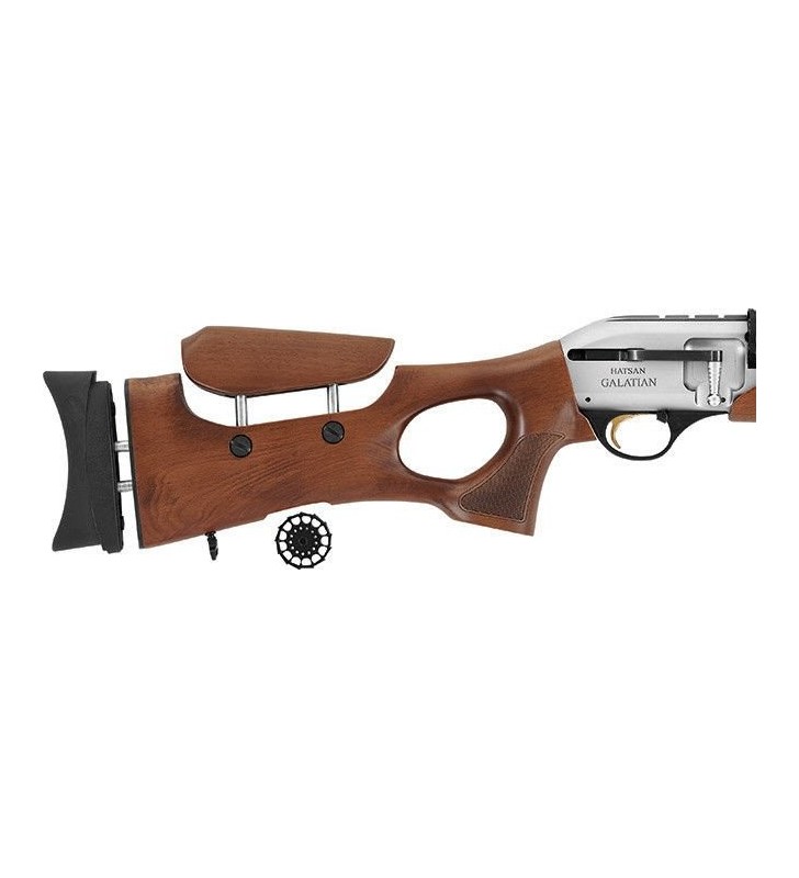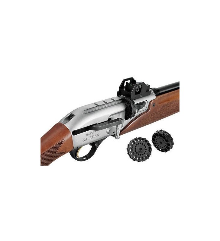 Karabinek Hatsan Galatian I-LW mocna, precyzyjna wielostrzałowa wiatrówka (16, 14 lub 13-strzałowa w zależności od kal.) PCP (Pre-Charged Pneumatic), z lufą Lothar Walther oraz kolbą TH (thumbhole) z orzecha tureckiego. Polecana miłośnikom tuningu...