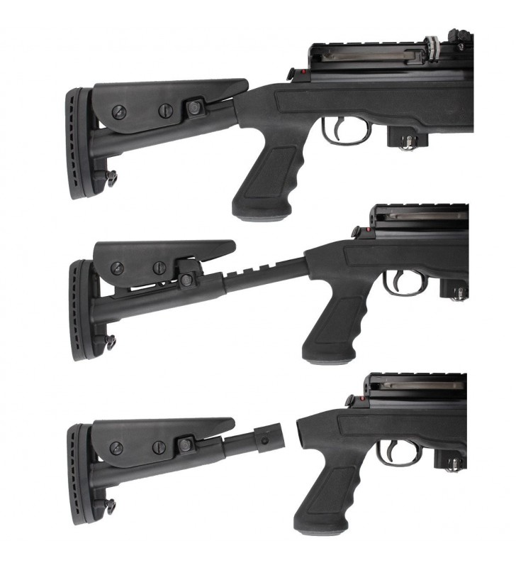 Kolba - aluminiowo-polimerowa teleskopowa kolba taktyczna TTS (Tactical Telescopic Stock). Umożliwia skokową regulację w zakresie 4" (10 cm) pozwalając dopasować jej długość do budowy strzelca. Przystosowana dla osób prawo oraz leworęcznych. Regulacja wysokości baki za pomocą śrub. Gumowa wentylowana stopka absorbująca energię strzału.