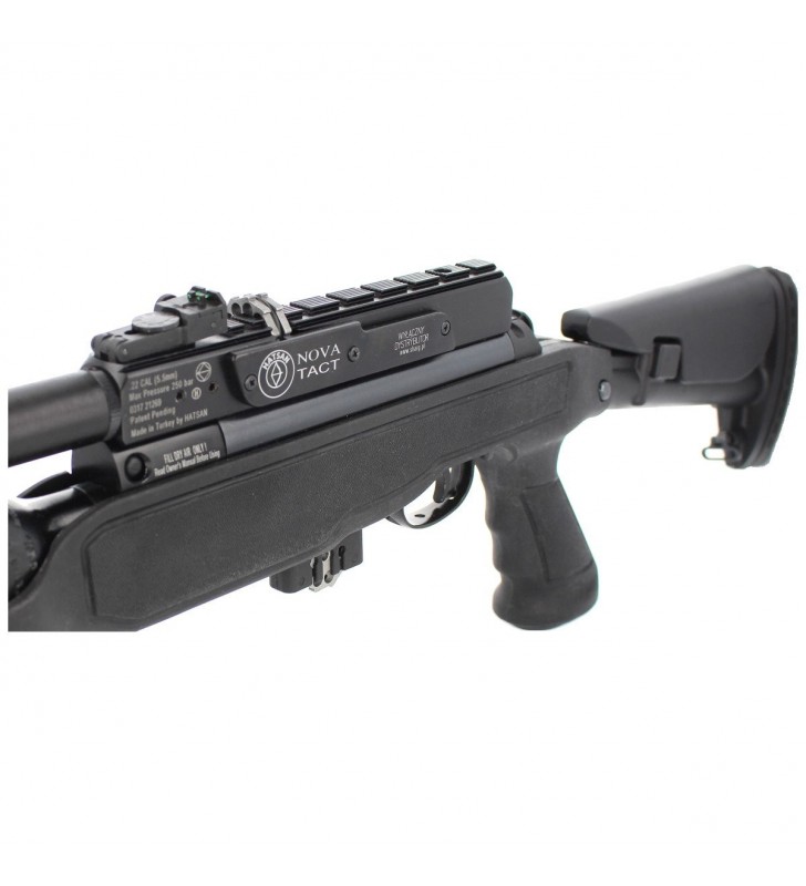 Nova Tact Compact, mocny karabin PCP firmy Hatsan dla miłośników tuningu. Regulowana kolba taktyczna TTS. Precyzyjna lufa Hatsan z gwintem ½" UNF umożliwia mocowanie tłumika. Podwójna szyna montażowa 11mm / 22mm. Zasobnik sprężonego powietrza o poj. 500cc