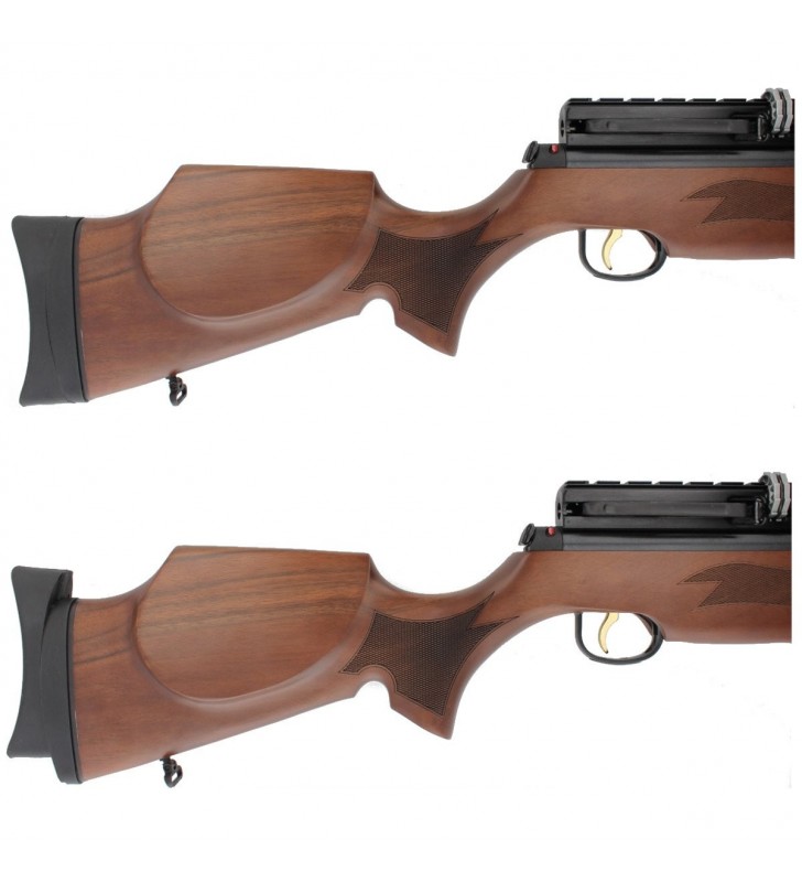Osada - klasyczna, wykonana z wyselekcjonowanego oryginalnego tureckiego orzecha. Profilowana poduszka policzkowa Monte Carlo. Gumowa, regulowana na wysokość stopka absorbująca energię strzału. Kolba przystosowana dla osób prawo i leworęcznych. Ryflowane łoże oraz chwyt pistoletowy.