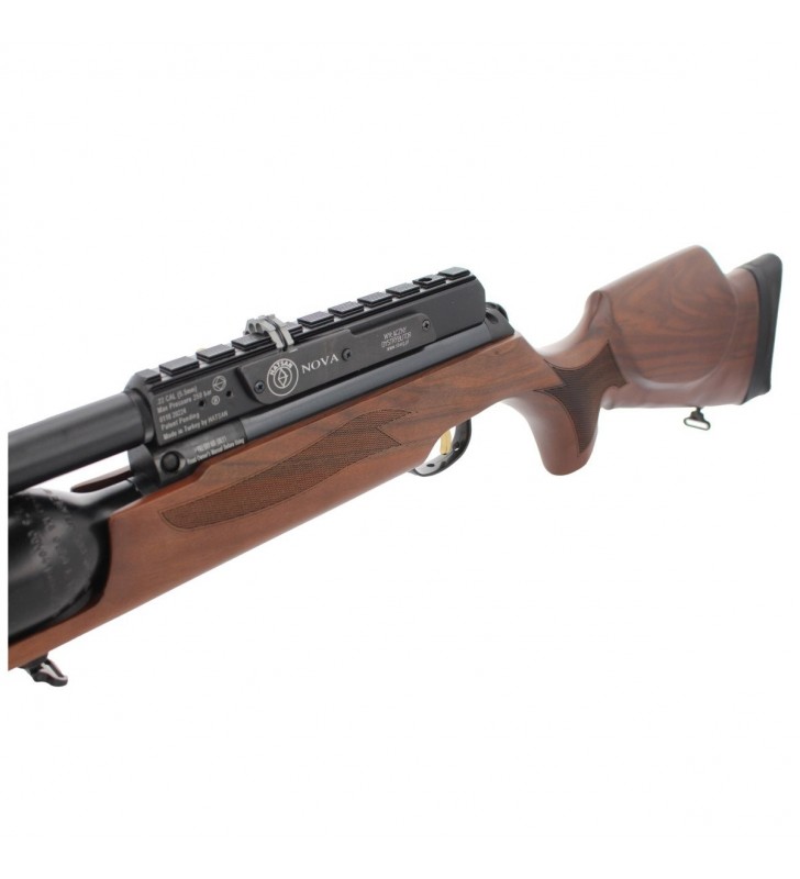 NOVA, mocny karabin PCP firmy Hatsan Arms z osadą z naturalnego orzecha oraz lufą ze zintegrowanym tłumikiem. Polecany miłośnikom precyzyjnego strzelania oraz tuningu. Dostępny w kalibrach: .177 (4.5 mm), .22 (5.5 mm), .25 (6.35 mm).