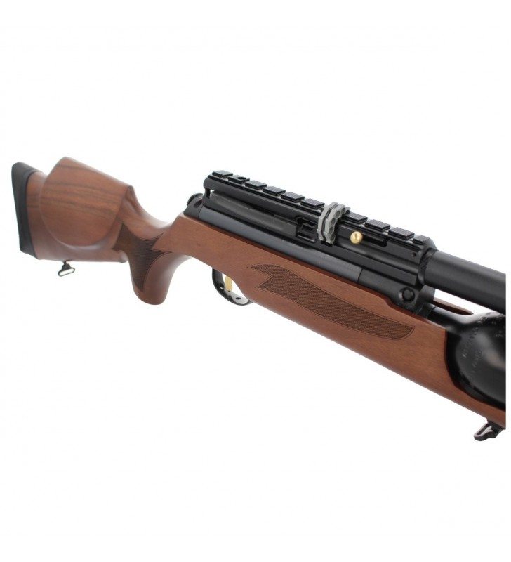 NOVA, mocny karabin PCP firmy Hatsan. Osada z tureckiego orzecha z regulowaną na wysokość stopką. Precyzyjna lufa Hatsan QE ze zintegrowanym tłumikiem. Podwójna szyna montażowa 11mm / 22mm. Zasobnik sprężonego powietrza o poj. 500cc...