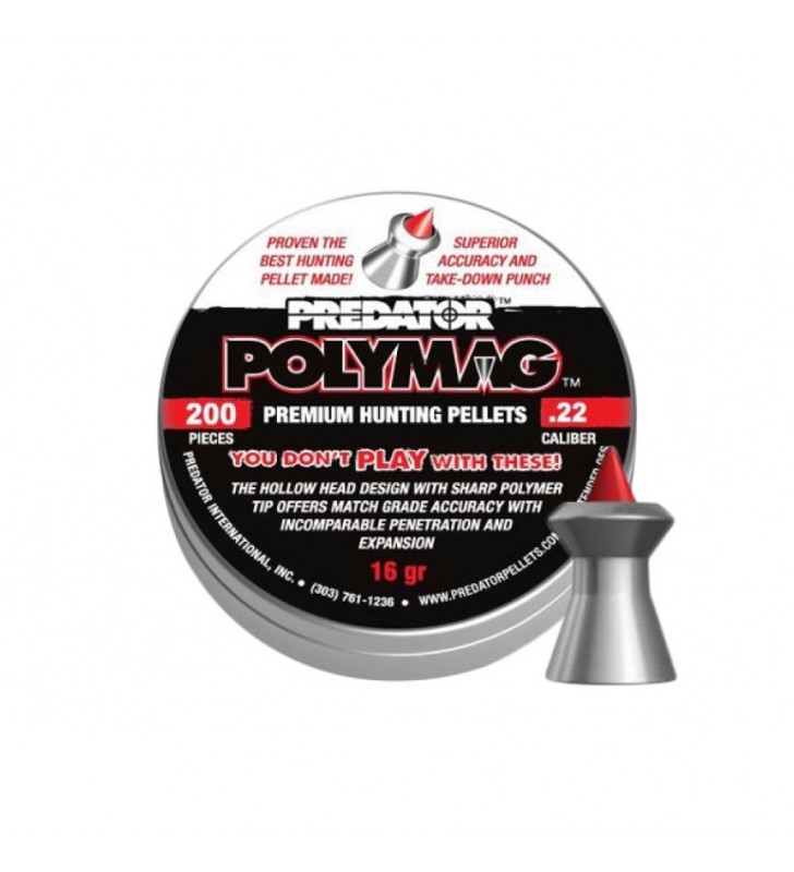 Śrut Diabolo JSB Exact Metalmag Predator 5,5 mm charakteryzuje się bardzo dużą przebijalnością. Dzięki metalowemu trzpieniowi który inicjuje grzybkowanie, śrut w znacznie wiekszym stopniu rozrywa cel (elekt małego otworu wylotowego z przeodu i dużego z tyłu).