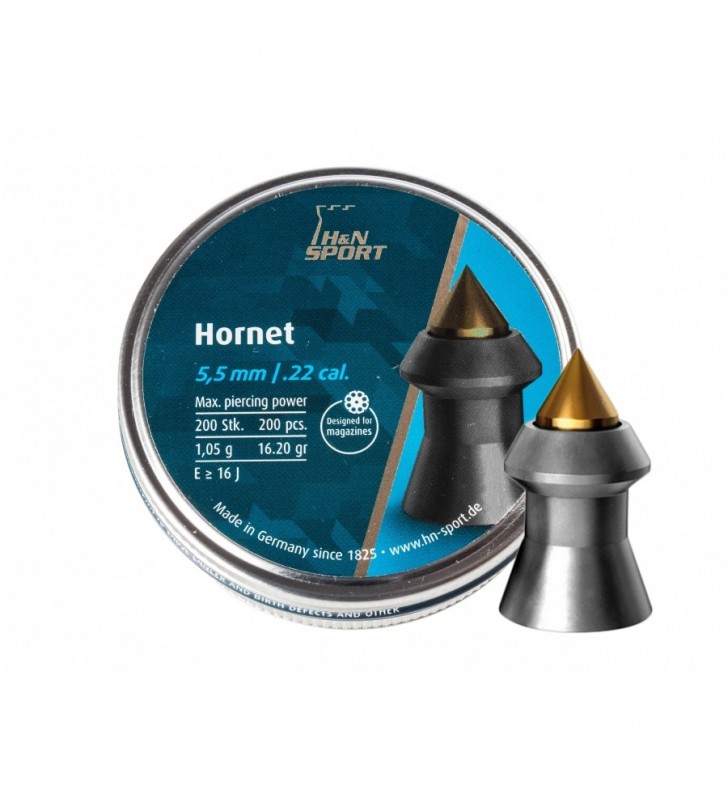 Przedstawiamy Państwu najwyższej jakości śrut H&N HORNET z bardzo ostrym czubkiem wykonanym z mosiądzu. Dzięki szpicowi śrucina ma bardzo duże właściwości przebijające, jak i destrukcyjne. Aerodynamiczny kształt sprawia, że śrut jest idealnym rozwiązaniem dla strzelców ceniących sobie strzelectwo na średnim dystansie.