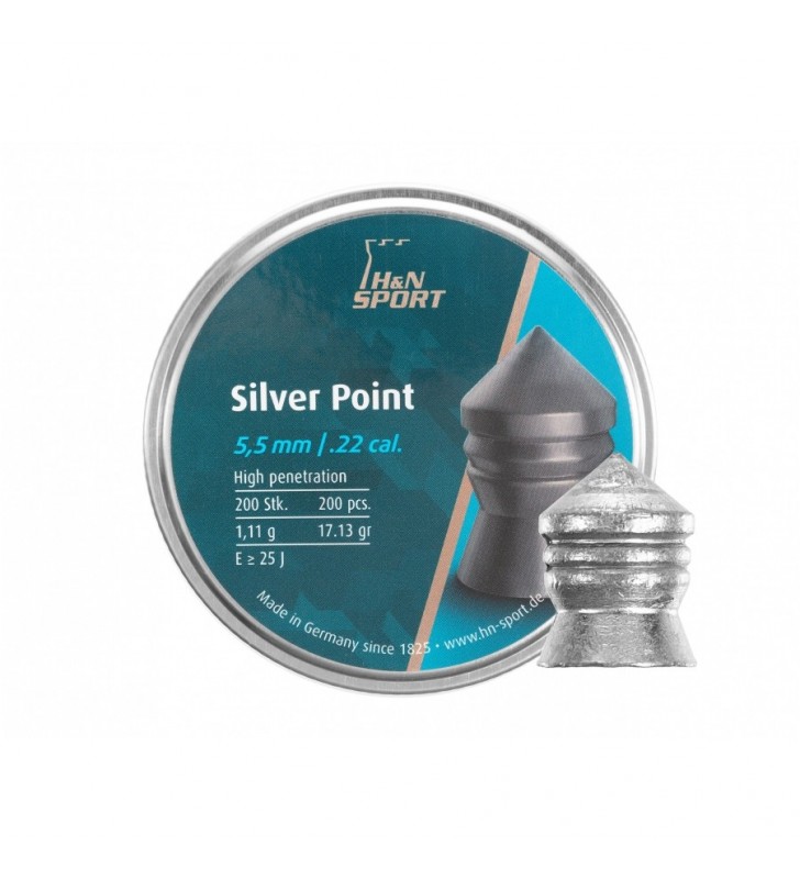 Śrut H&N Silver Point to najcięższy śrut produkowany przez firmę H&N. Ze względu na ciężką wagę 17,13g przeznaczony jest do wiatrówek o bardzo dużej prędkości początkowej. Śrut został wzbogacony specjalnie utwardzonymi dodatkami, dzięki czemu śruciny nie ulegają odkształceniu chociażby podczas transportu.