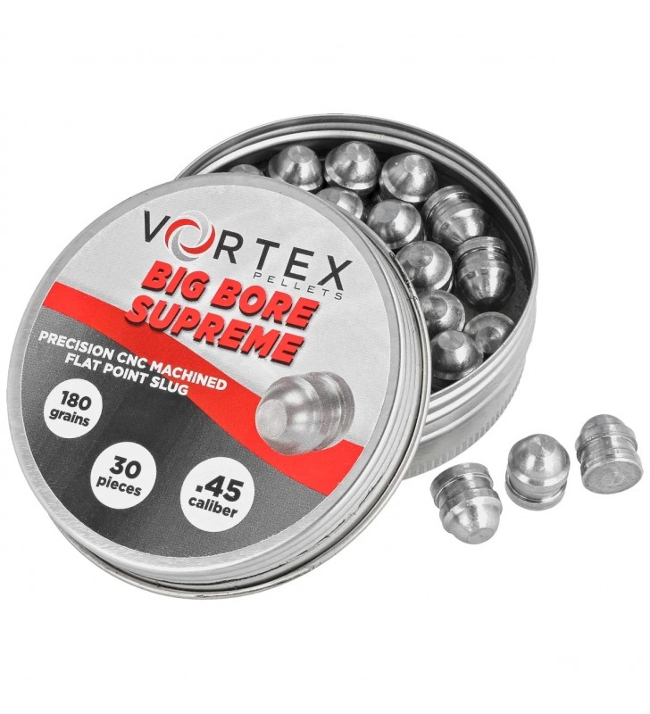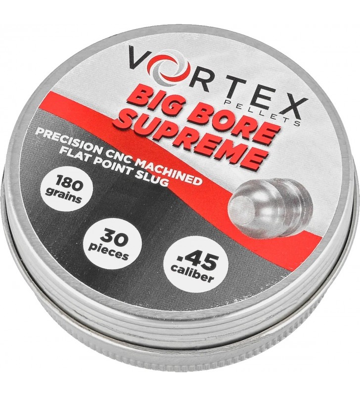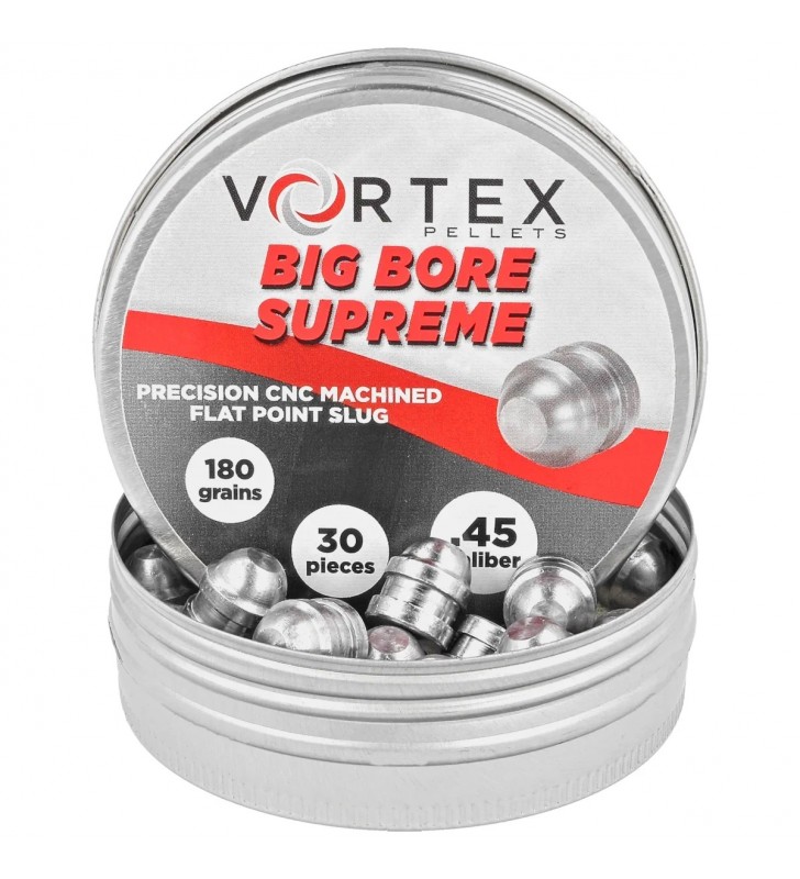 Vortex Big Bore Supreme .45 niezwykle precyzyjny, ciężki śrut 180typu Slug Hollow Point (grzybkujący) amerykańskiej marki Hatsan USA w kalibrze 11.43 mm.