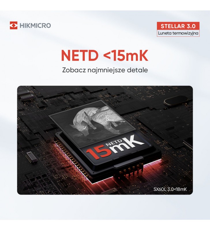 Dzięki pierwszemu przełomowi w STELLAR 3.0, NETD wynosi mniej niż 15 mK, co sprawia, że zdolność urządzenia do percepcji różnic temperatur osiągnęła nowy poziom. Im bardziej czułe jest urządzenie, tym lepsza jego percepcja otoczenia, co skutkuje wyraźniejszymi obrazami i uchwyceniem najdrobniejszych szczegółów. To sprawia, że technologia obrazowania termicznego coraz bardziej wspiera myśliwych w podejmowaniu każdej decyzji podczas polowania.