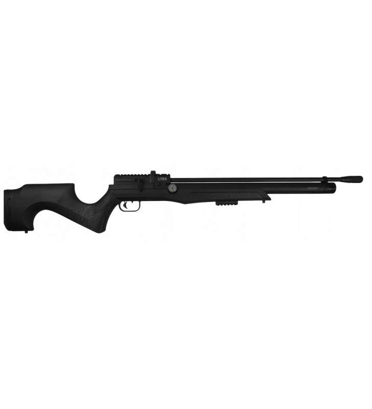 Lyra S, kultowa wiatrówka PCP marki Reximex teraz dostępna w osadzie polimerowej. Wyposażona w dźwignię napinania Side Lever, regulowany język spustowy, regulowaną stopkę.