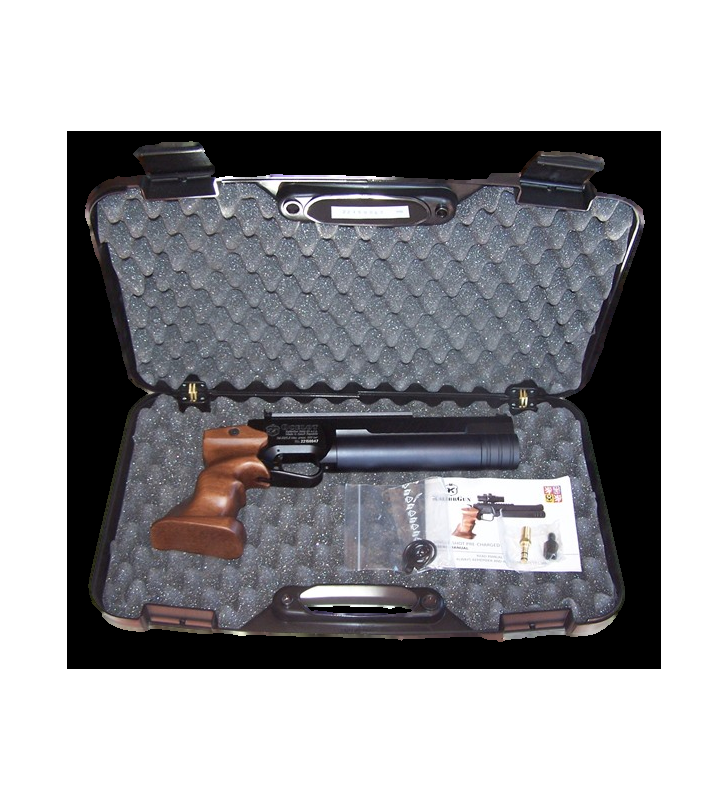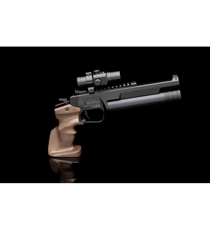Nietuzinkowy design pistoletu którego cechą charakterystyczną jest znakomita drewniana kolba. Kolba wyprofilowana i wyrzeźbiona z przeznaczeniem dla strzelców praworęcznych, idealnie dopasowuje się do ręki. W dużym metalowym kabłąku znajduje się język spustowy.