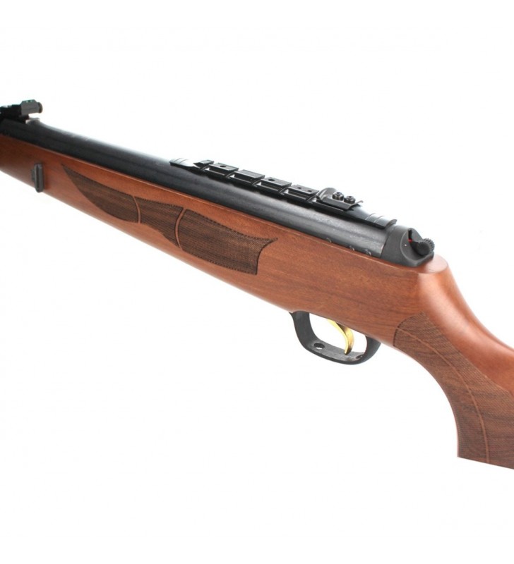 Bezpiecznik - automatyczny & manualny, umieszczony w tylnej części cylindra wiatrówki chroni przed oddaniem niekontrolowanego strzału. Każdorazowe naciągnięcie sprężyny powoduje automatyczne jego zadziałanie.