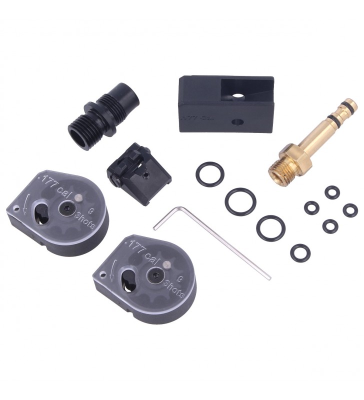 Magazynek - obrotowy o pojemności od 7 do 9 śrucin w zależności od kalibru. Przeładowanie odbywa się za pomocą dźwigni napinania side lever action. Powoduje ona naciągnięcie „kurka”, obrócenie magazynka i wprowadzenie nowego śrutu do komory. W zestawie dwa magazynki.