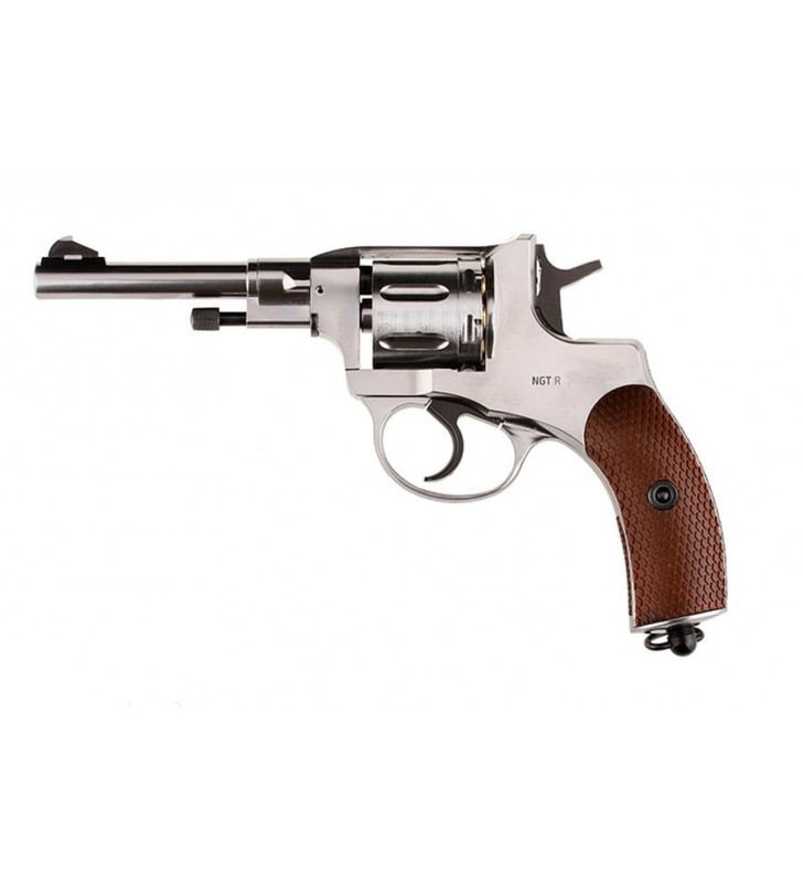 Wiatrówkowa replika rewolweru Nagant to bardzo udana i bezawaryjna konstrukcja wiernie odwzorowująca oryginalną broń palną. Wszystkie elementy są w niej precyzyjnie wykonane.