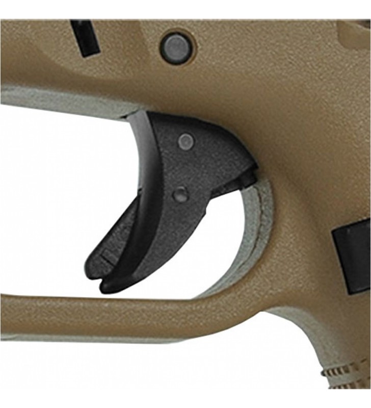 Pistolet wyposażono w atrapę obustronnej dźwigni zrzutu zamka, szynę akcesoryjną, dodatkowy bezpiecznik nastawny oraz teksturowaną rękojeść z zaczepem na smycz taktyczną.