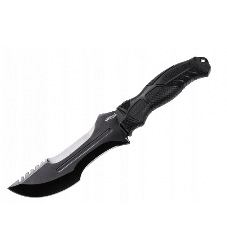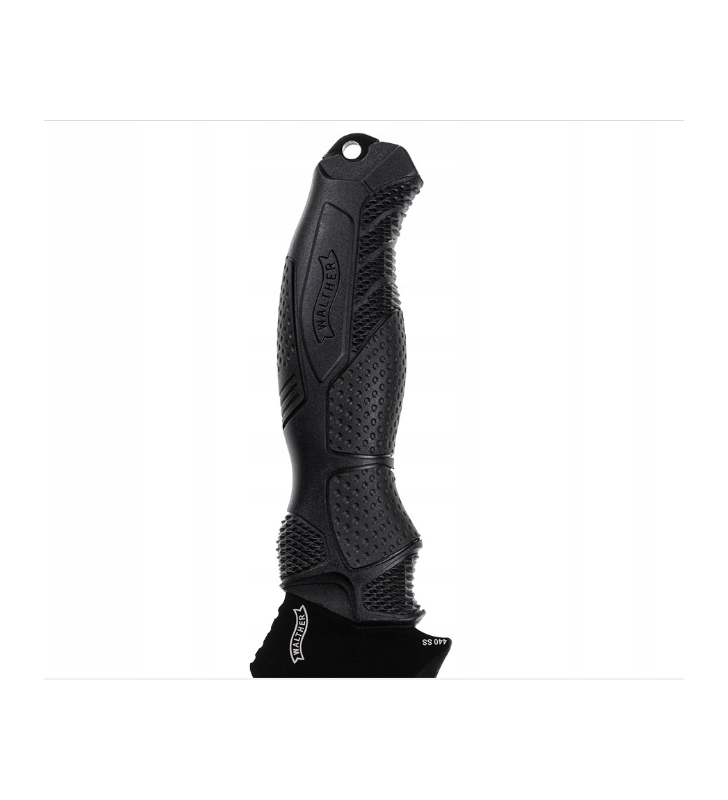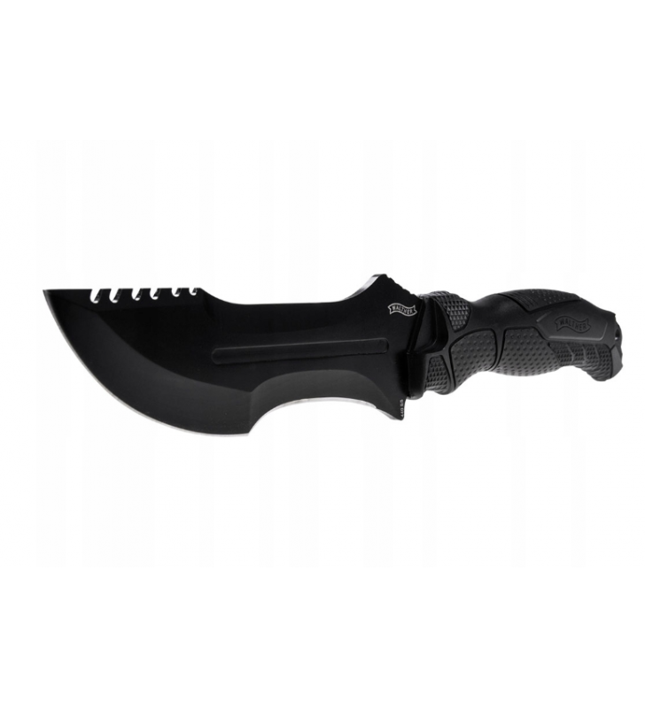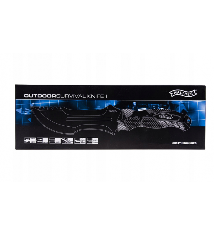 Nóż o konstrukcji full-tang. Masywną głownię wykonano ze stali nierdzewnej 440 z czarną powłoką.
