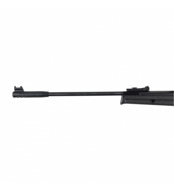Wiatrówka UX PRymex Set w kalibrze 5,5 mm Diabolo to nowoczesny karabinek z naciągiem sprężynowym oraz łamaną lufą. Cechuje go prostota wykonania oraz stylistyka luźno nawiązująca do broni snajperskiej. Wiatrówkę wyposażono w polimerową osadę z ergonomicznym chwytem, łożem oraz kolbą z gumową stopką. Dodatkowo karabinek ma na komorze tłoka fabrycznie zainstalowaną szynę montażową 11 mm umożliwiającą instalację celownika optycznego. Cechą wyróżniającą przedstawiony model na tle innych jest lekka lufa oraz wyraziste przyrządy celownicze. Wiatrówka jest dedykowana każdemu, kto chce doskonalić swoje umiejętności strzeleckie oraz do strzelania precyzyjnego i sportowego.